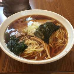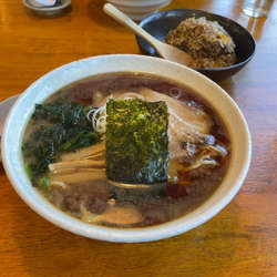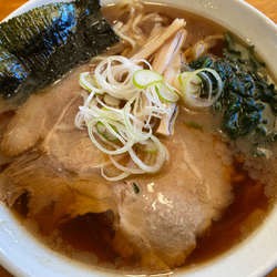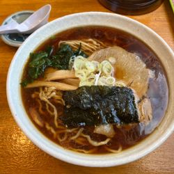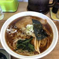 脂が少し多めだが出汁と醤油の旨みが濃い見た目の色も濃いスープ。