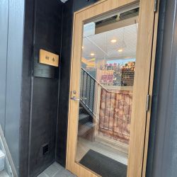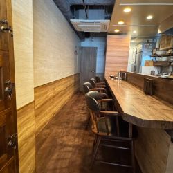 建物の外階段で2階に上がった店内は木目調でオシャレな、今日現在厨房向きカウンター4席と手前に4人掛けテーブル席が一卓ありお水とおしぼりは出して頂きました(壁側にハンガー掛け、椅子下に荷物カゴ、奥にお手洗いあり)。