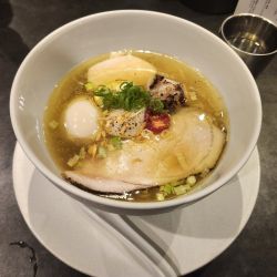| 備考 | 木桶醤油と地鶏が織りなす珠玉の一杯。 厳選塩で引き立つ地鶏の極上の味わい。 ※店の一押しは「塩ラーメン」。 店主の経歴 料理人の父親の影響で子供の頃から料理が好きで レストランやカフェなど飲食歴20年以上で 大好きなラーメン屋の開業を目指す。 ラーメン店での経験はRamen Break Beats、Ramen Afro Beats、 Ramen Jazzy Beatsにてバイト経験あり(弟子非公認)。 ※ラヲタ特有のどや顔で 「〇〇出身!」、「〇〇で修行!!」というより ラヲタ出身といった方が適切かも。 醤油は6種の木桶醤油をブレンドし バルサミコでキレを砂糖みりんは使わずにデーツ、 メープルで深みと余韻を深める。 塩は 平目などのアラを中心に 10種類以上の魚介のだしをブレンドし、 4種類ほどの海塩、いしる、鮎魚醤で深みをにがり、 りんご酢で輪郭を持たせている。 香味油にはラード・鶏油・ネギ・ニンニクなどを使用。 自家製麺は国産小麦主体で全粒粉入り。 珍しい細麺の平打ち麺(140g)。 ※以上は店主と旧知の仲の 株式会社ソラノイロ 代表取締役宮崎千尋氏のツイッターより抜粋。 一部加筆あり。 |