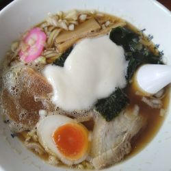 まん中の白い泡のようなものは出汁だそうで、濃い煮干を演出した感じ。