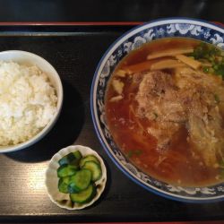 戴いてみると、思ったほど濃い感じではないが、スープは丁度良くバランスが取れており、チャーシューも味がしみていて美味しいです。
