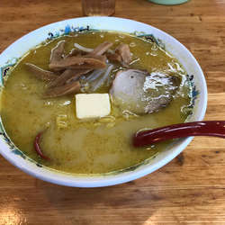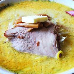 生姜の効いた味噌に、カレー粉のアクセント、牛乳が円やかさを出し、バターが甘く仕上げてくれます。黄身が多めの甘い中太麺も、スープとベストマッチ。四十年ほど食べてますが、初めて食べた時の衝撃は忘れられず、以来私の大好物となってます。